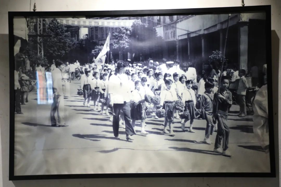 走上二楼,迎面便是一幅巨大的“中山路踩街”照片,红火热闹的画面让人仿佛身临古城的民俗狂欢派对。据了解,该影像展以“时代”为线索,以中山路为核心,共分“中山路记忆”“南路商潮”“侨光电影院”“百年家族”等四大版块,大到沧海桑田的时代巨变,小到古城人家的世代传袭,无声讲述着中山路百年故事。