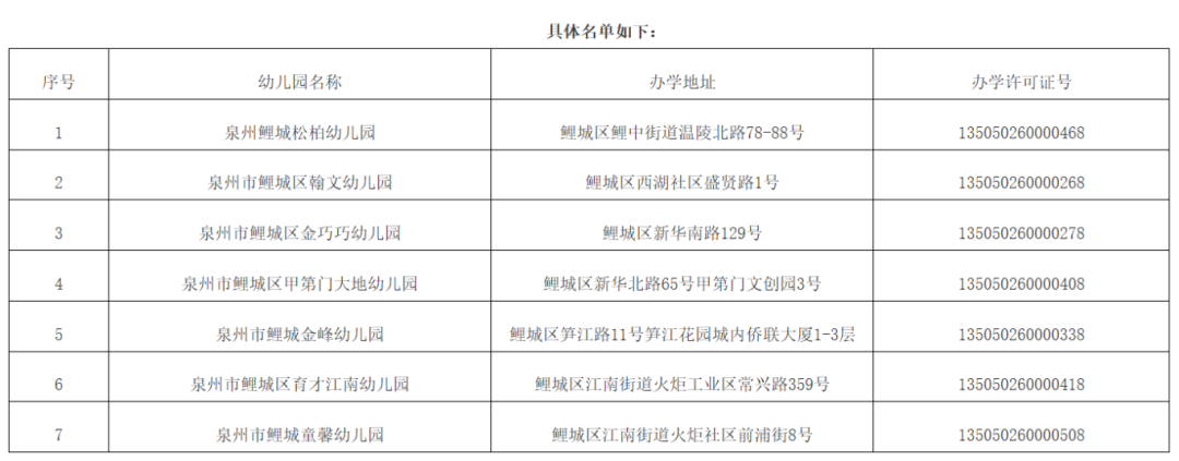 【教育】鲤城最新公告!这7所幼儿园终止办学!