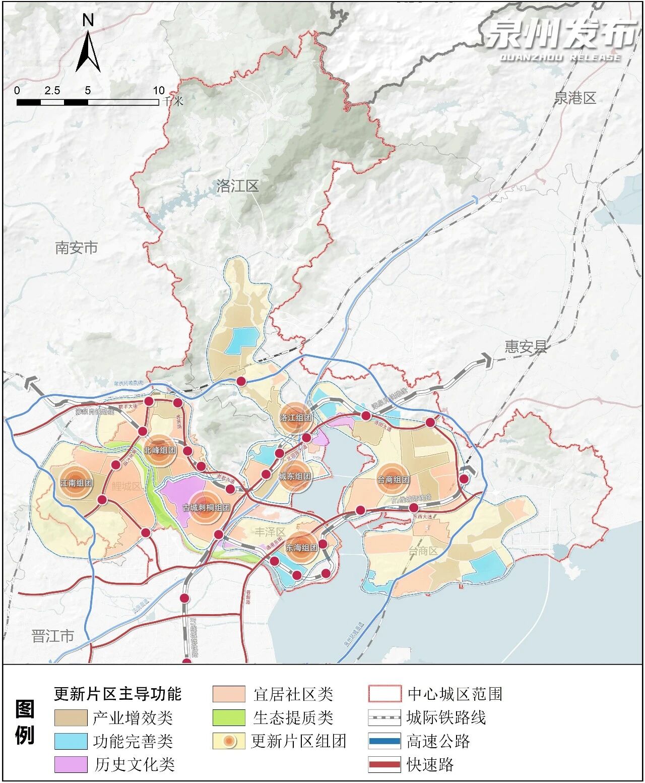 “七组团”:涵盖古城刺桐、江南、东海、城东、北峰、洛江、台商等七大更新组团。