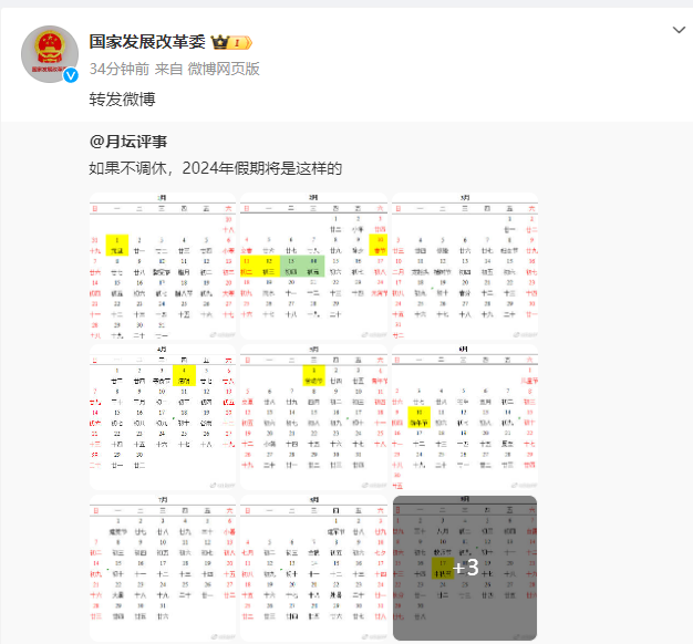 25日,@国家发展改革委 官方微博就此发布“2024年放假安排的五大突出亮点”。
