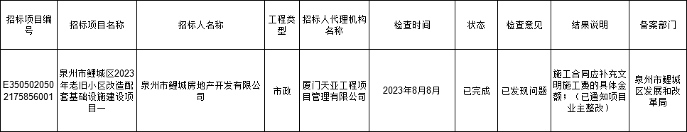 鲤城区发展和改革局关于2022年鲤城区依法公开招标项目“双随机、一公开”检查结果公示