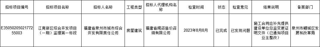 鲤城区发展和改革局关于2023年鲤城区上半年依法公开招标项目“双随机、一公开”检查结果公示