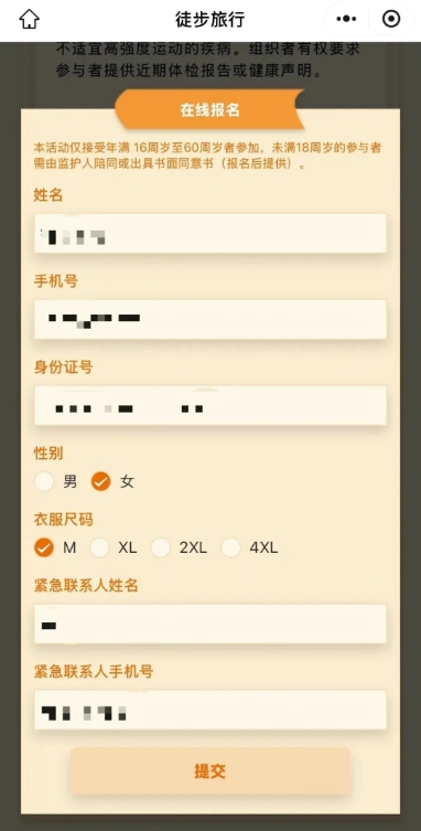 年龄限制:参与者需年满16周岁至60周岁,未满18周岁的参与者需由监护人陪同或出具书面同意书。