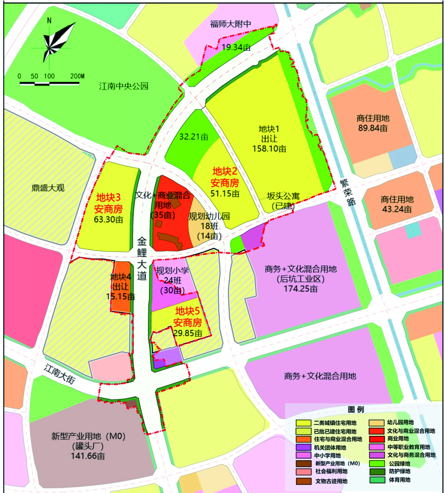 以金鲤大桥和金鲤大道建设为主线,规划用地面积749亩,综合考虑地块出让、群众安置、文物和老建筑保护等的规划布局,对沿路区域实施更新改造,计划总投资43亿元。片区内规划:可出让住宅/商住用地(317亩)、商业用地(35亩)、小学用地(30亩)、幼儿园用地(14亩),其余为道路、公园绿化等用地。其中,金鲤大桥全长1.97公里;金鲤大道全长约2.2公里,宽度50米,双向6车道。