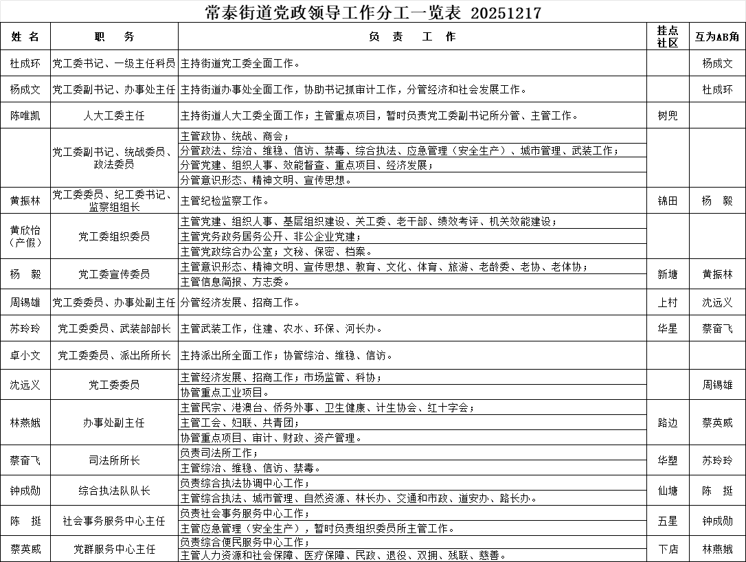 常泰街道党政领导工作分工2025.12