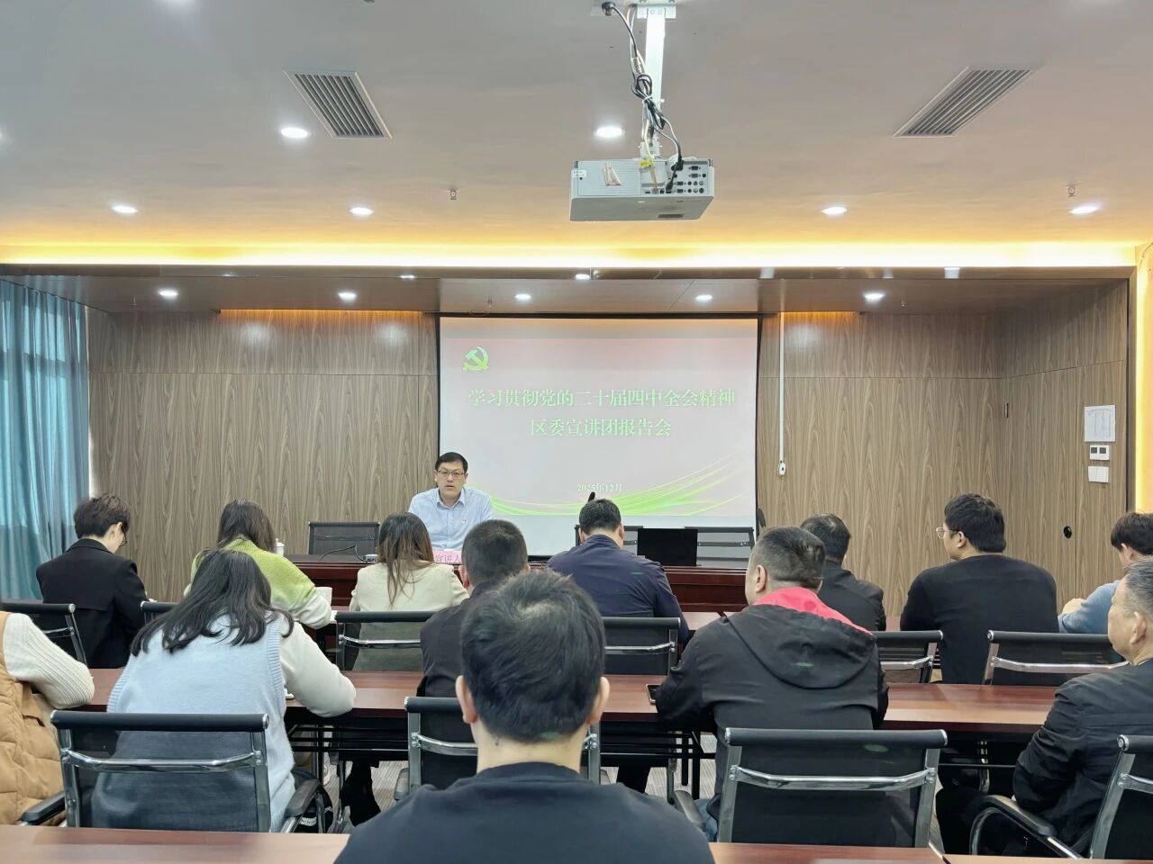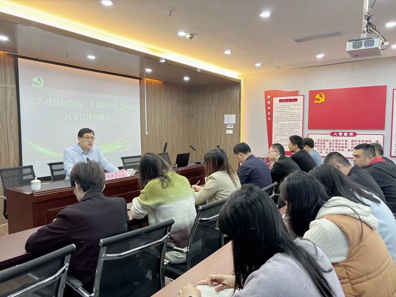 12月11日,学习贯彻党的二十届四中全会精神鲤城区委宣讲团在高新区开展宣讲,区委宣讲团成员、高新区管委会党组成员、副主任黄渊渊作宣讲报告。高新区管委会全体干部职工参加。