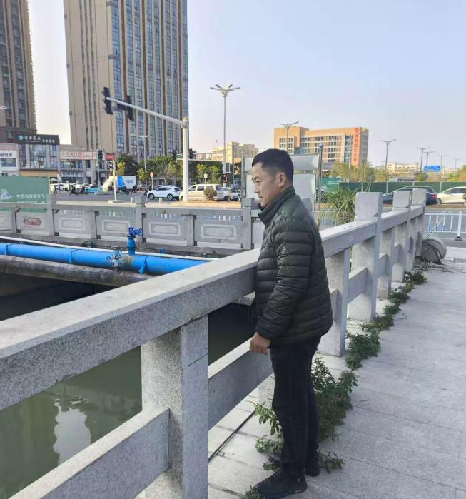 12月9日,金龙街道武装部部长、流域河长吴荣连到新港渠巡河。