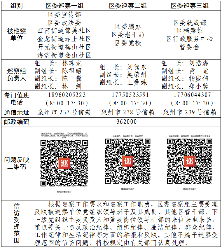 中共泉州市鲤城区委巡察工作领导小组办公室