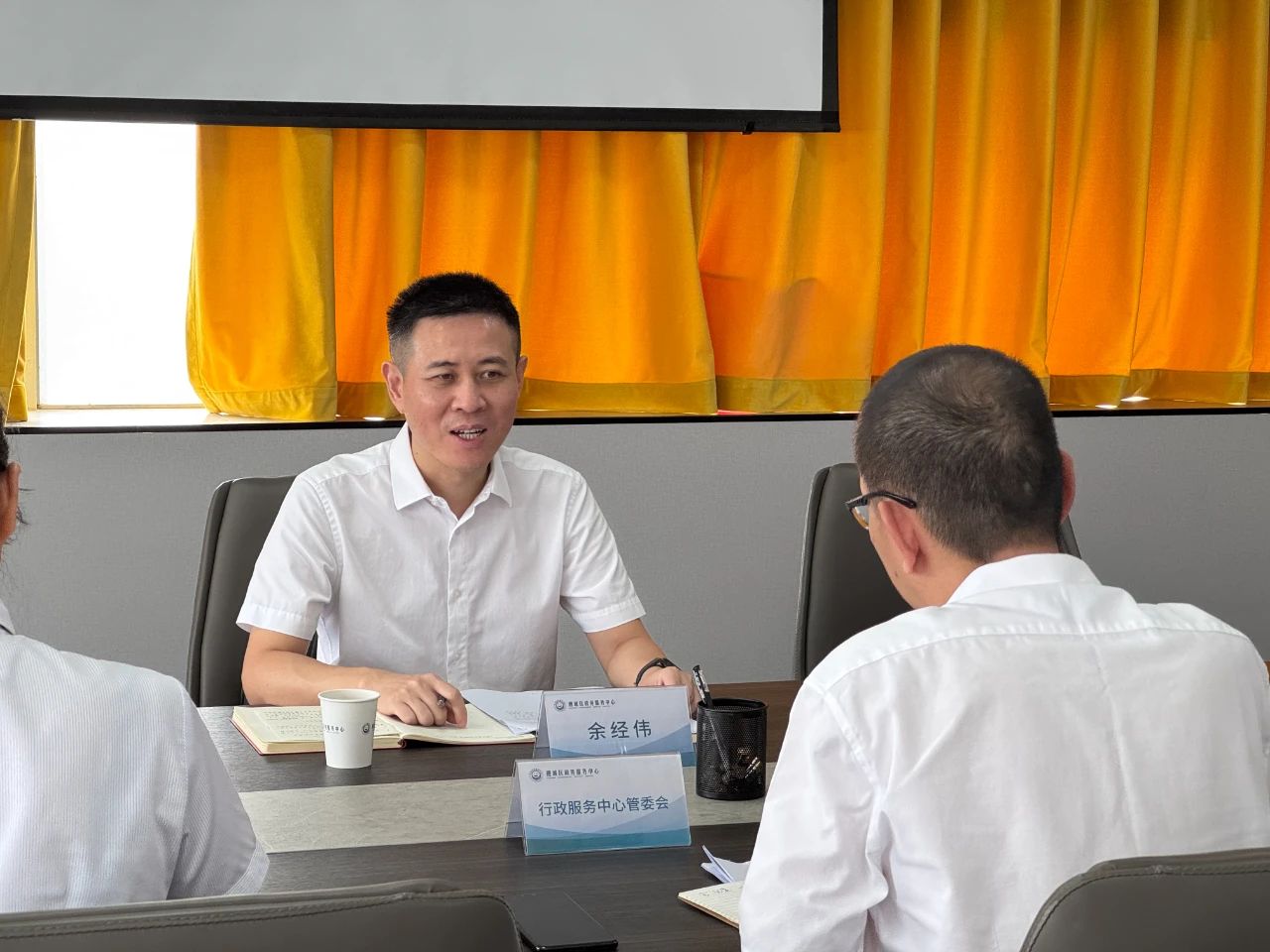 7月23日上午,鲤城区政府党组成员、副区长余经伟带队走访区政务服务中心开展调研工作。区行政服务中心管委会主要负责人陪同调研。