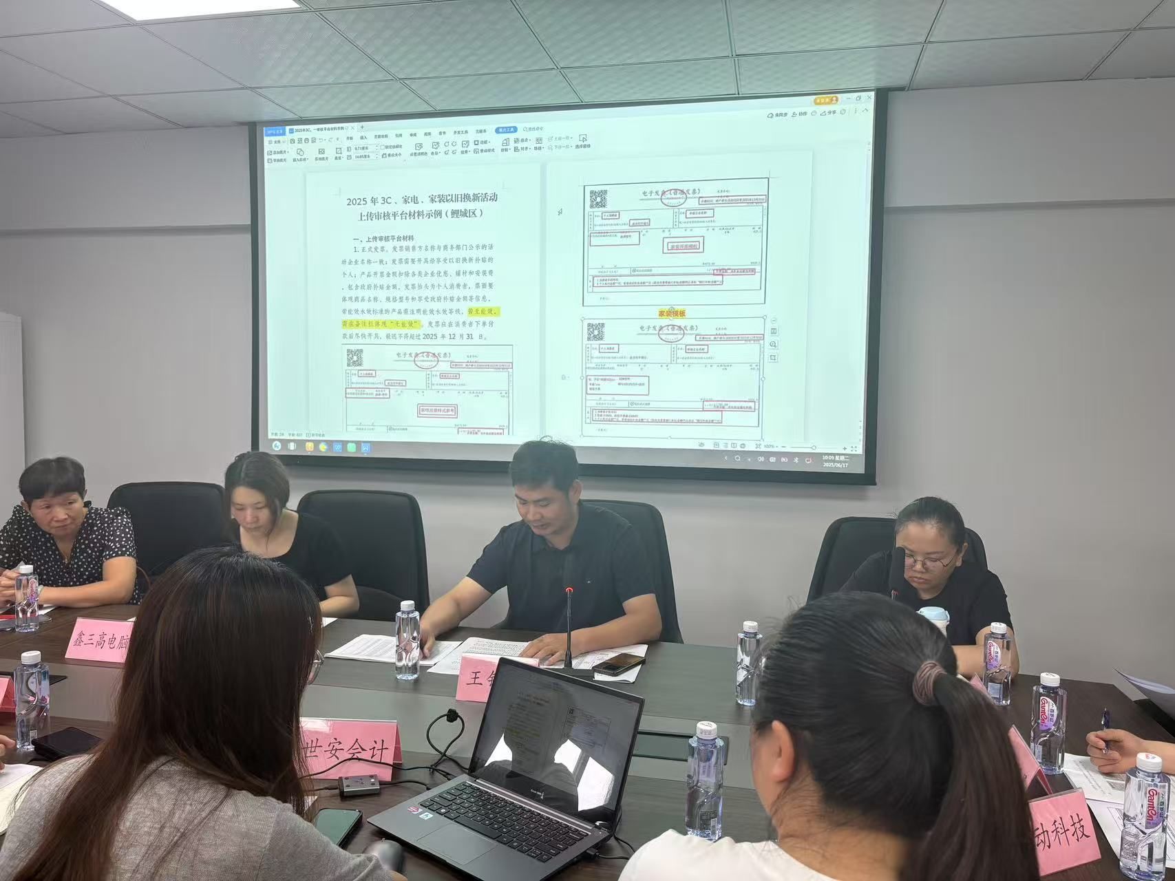 接着,泉州世安会计师事务所专业人员结合前期审核案例,通报了企业上传材料中常见的票据信息不全、信息缺项漏项、照片模糊不清等情况。 重点讲解并发放了《2025年3C、家电、家装以旧换新材料上传审核规范示例》, 对发票、签购单、发货单等核心材料的规范要求、易错点及上传注意事项进行了重申和强调,提供了清晰的操作指引。