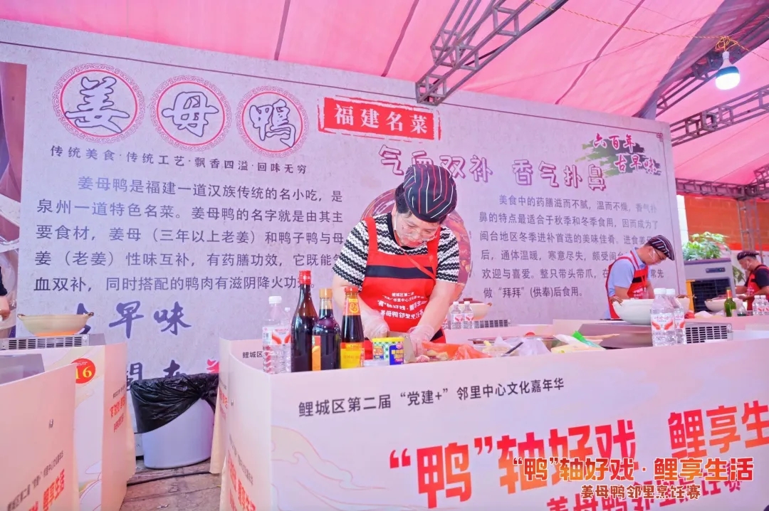 7月30日,鲤城区第二届“党建+”邻里中心文化嘉年华之“‘鸭’轴好戏·鲤享生活”姜母鸭邻里烹饪赛在鲤中街道新峰社区“党建+”邻里中心火热开启。广大邻里朋友和美食大师们齐聚一堂,共赴一场味蕾与文化的盛宴。鲤城区委常委、组织部部长吴飞凌出席活动。