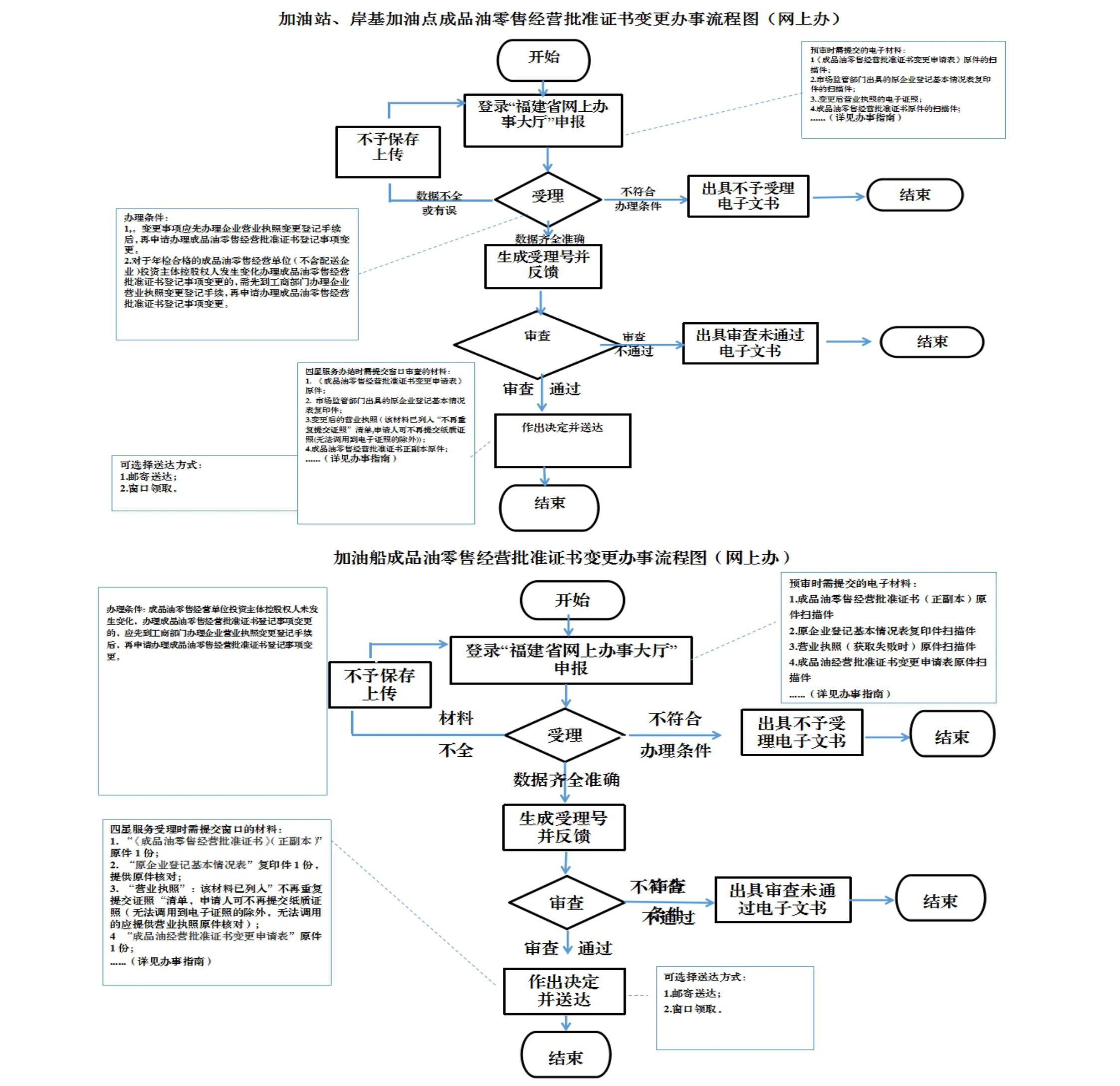 2.对于年检合格的成品油零售经营单位(不含配送企业)投资主体控股权人发生变化办理成品油零售经营批准证书登记事项变更的,需先到工商部门办理企业营业执照变更登记手续,再申请办理成品油零售经营批准证书登记事项变更。