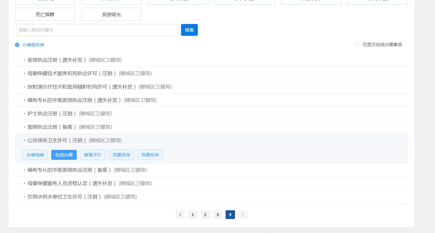 2、线上材料核验:登陆https://zwfw.fujian.gov.cn/按“我要办”-“部门服务”-“鲤城区卫健局”步骤查询公共场所卫生许可(注销),点击“我要申报”。