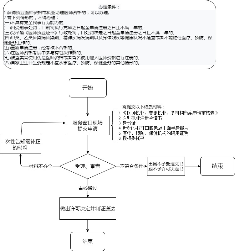 【办理结果】:在流程表及申请表上签批,制发《医疗机构执业许可证》。