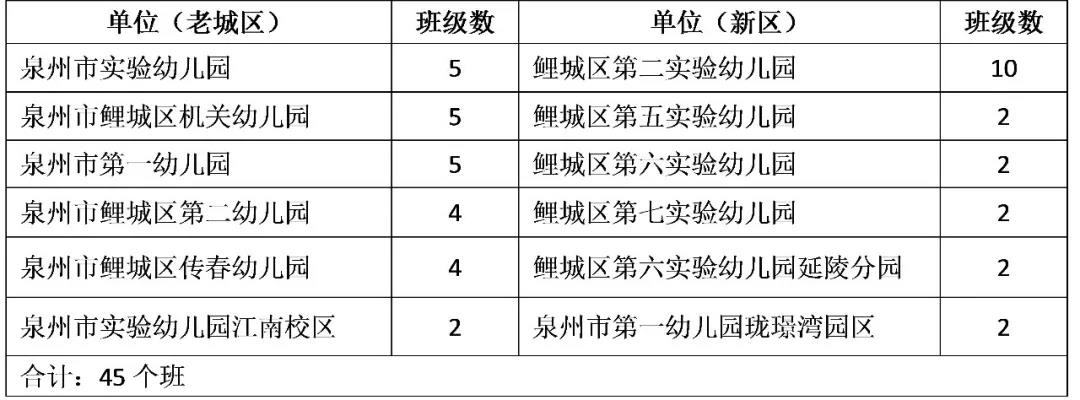 2.泉州市第一幼儿园新增1个班、鲤城区第二幼儿园新增1个班;