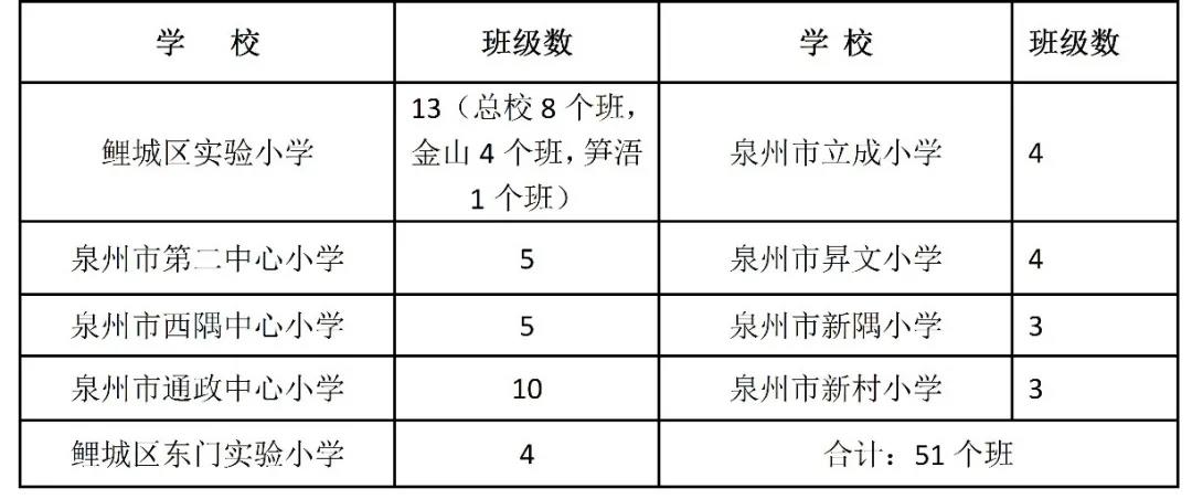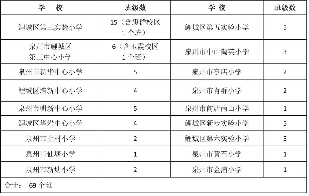 1.鲤城区第三实验小学新增2个班,鲤城区第六实验小学新增1个班;