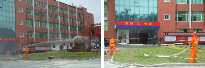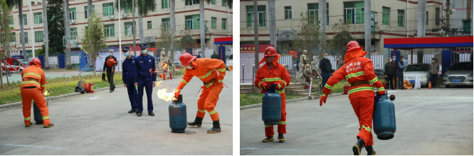 “着灭火防护服利用湿毛巾灭液化气钢瓶火”竞赛现场