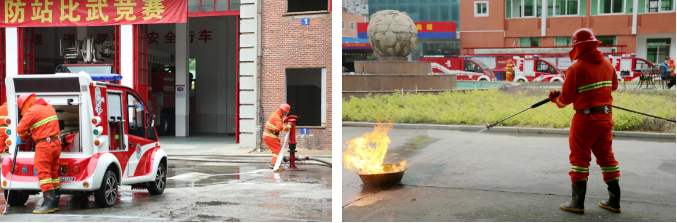 “微型消防车高压水枪油盆灭火”竞赛现场