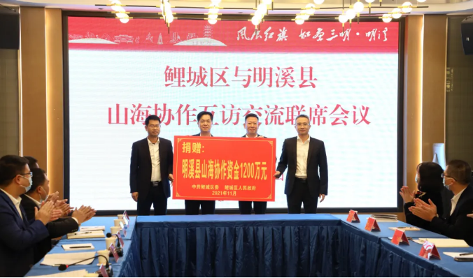 在鲤城—明溪山海协作联席会议上,鲤城区向明溪县捐赠山海协作资金1200万元,并举行明溪县-鲤城区山海协作产业园区共建协议签约仪式,两地领导围绕如何进一步深化山海协作进行交流探讨。