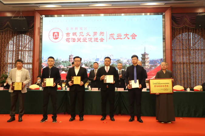 为进一步健全完善鲤城区见义勇为人员保障制度和司法关爱体系,创新救助帮扶举措打造“执行+慈善”新路径,丰富慈善内涵,传承乐善好施美德,打造“首善之区”。12月8日上午,泉州鲤城区古城见义勇为司法关爱促进会成立大会在金星酒店举行。市委政法委常务副书记陈长义,区处级干部黄辉灿、王克思、林清泉、陈燕飞、白建胜、李清坝、苏紫燕出席。区委常委、政法委书记曾朝阳主持会议。