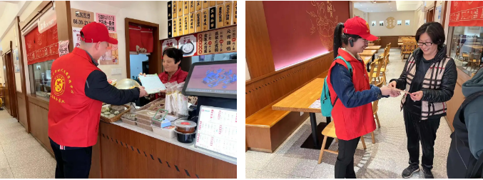 党员们在徒步过程中为沿途商店、过往行人发放宣传材料