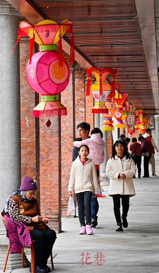 “我很喜欢骑楼下赏灯的感觉。”大学生小张和同学一起徜徉在骑楼建筑群下赏花灯。她说,中山路的这些花灯都是传统技艺制作的,与古城韵味相得益彰,特别是悬挂在骑楼下的宫廷花灯,别有一番风味。