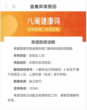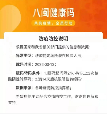 赋黄码期间请务必做好个人健康监测,减少与他人接触,避免前往人群聚集公共场所。