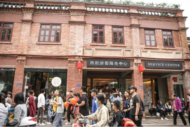 西街游客服务中心除了提供咨询接待、资源推介、风光展示、信息交流等系列服务外,还作为泉州古城“润物无声”青年创客文化IP孵化项目产品展陈空间,设置了非遗手工体验课程区,并不定期举办体验活动。