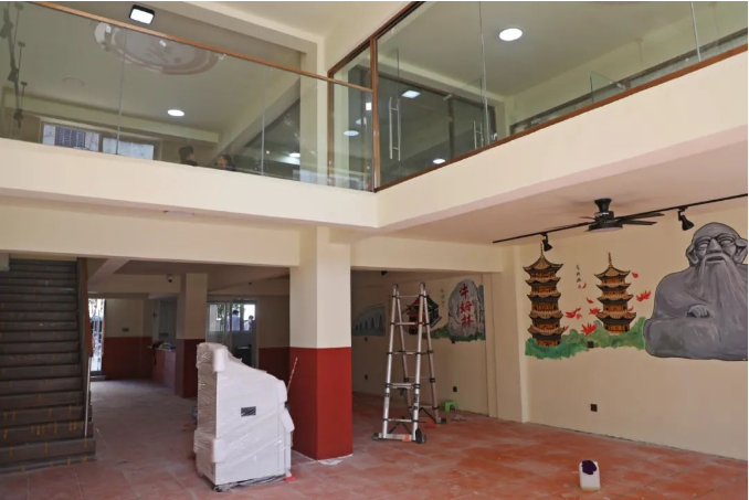 据介绍,该“长者食堂”位于社区“党建+”邻里中心居家养老服务站一层,目前,内部硬装已经基本完工,墙面上特地画上了东西塔、老君岩、崇武古城等闽南标志性景点,整个空间充满了闽南元素。