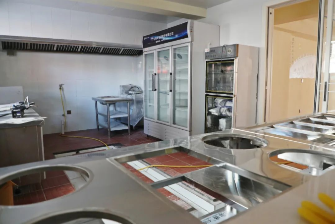 “考虑到老年群体的需求和喜好,地面全部采用防滑地砖,同时将泉州景点、地图彩绘和闽南红砖等元素融入其中,为前来就餐的老年人带来亲切感。”项目施工方负责人介绍,食堂规划餐厅、厨房区域,可容纳50人同时用餐,目前,厨房内的灶台、油烟机、消毒柜、冰箱、洗碗池等基础设施也已配备到位。
