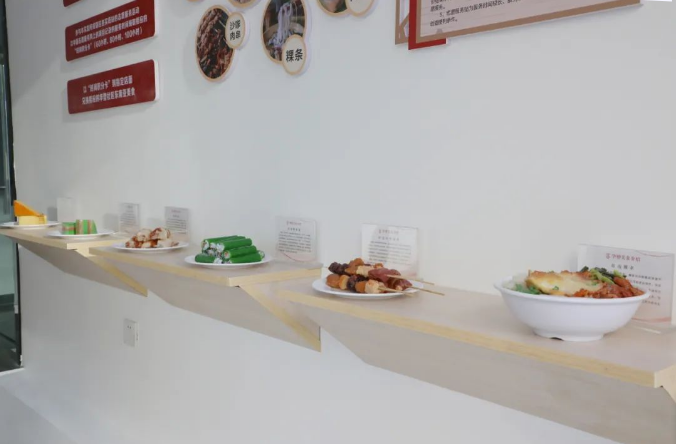 一走进常泰街道新时代文明实践所,就能看到“时间餐吧”,十分显眼。虽然只有一个小角落,布置却十分用心,墙上张贴着兑换流程图、志愿服务工作流程等操作细则,小展板上还摆放着印尼千层糕、越南粿条、越南卷粉等6个东南亚美食模型,造型逼真,看起来十分美味可口。