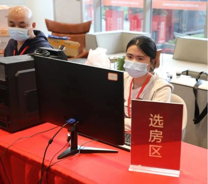记者在选房现场看到,为确保各环节快速、有序衔接,现场划分房源展示区、等候区、选房区、财务区等功能区,并安排专人“一对一”引导办理资料,业主经过资料登记资格审核、初审后,即可选房。