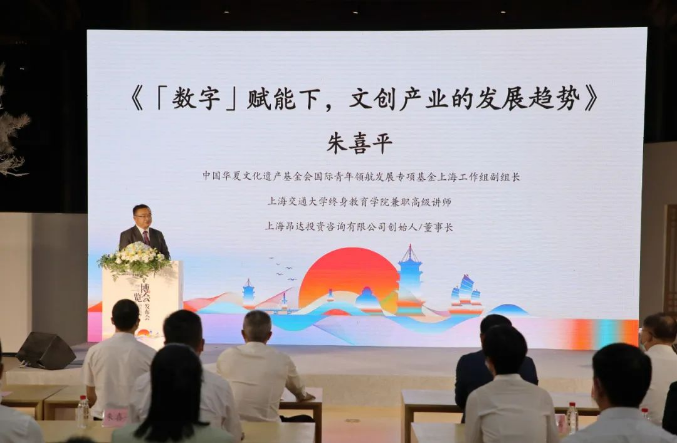 当天,中国华夏文化遗产基金会国际青年领航发展专项基金上海工作组副组长,上海交通大学终身教育学院兼职高级讲师,上海昂达投资咨询有限公司创始人、董事长朱喜平带来《“数字”赋能下,文创产业的发展趋势》主题演讲;上海市创意产业协会文创IP产业中心秘书长、上海快闪微秀网络科技有限公司CEO徐超现场分享泉州首个城市NFT数字藏品——金福船的设计理念。