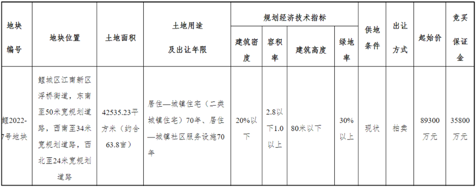 日前,记者从相关部门获悉,鲤2022-7号地块将于12月29日出让。该地块占地面积约63.8亩,将采用“限房价、限地价、摇号”方式拍卖出让,并不设保留价。