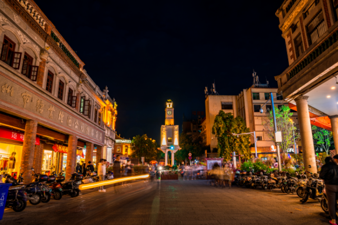 漫步在中山路步行街,以钟楼为起点,往西为西街,往南则为中山路,整个街区文化主题和地域特色鲜明,具备旅游休闲、文化体验和公共服务等功能,融合观光、餐饮、娱乐、演艺、非遗展示、地方老字号、传统手工艺、文化创意、购物、住宿、休闲、电影放映等业态,能够满足游客和本地居民游览、休闲等需求,是夜购物、夜美食、夜休闲、夜旅游、夜娱乐、夜健身等多样业态的集聚区。