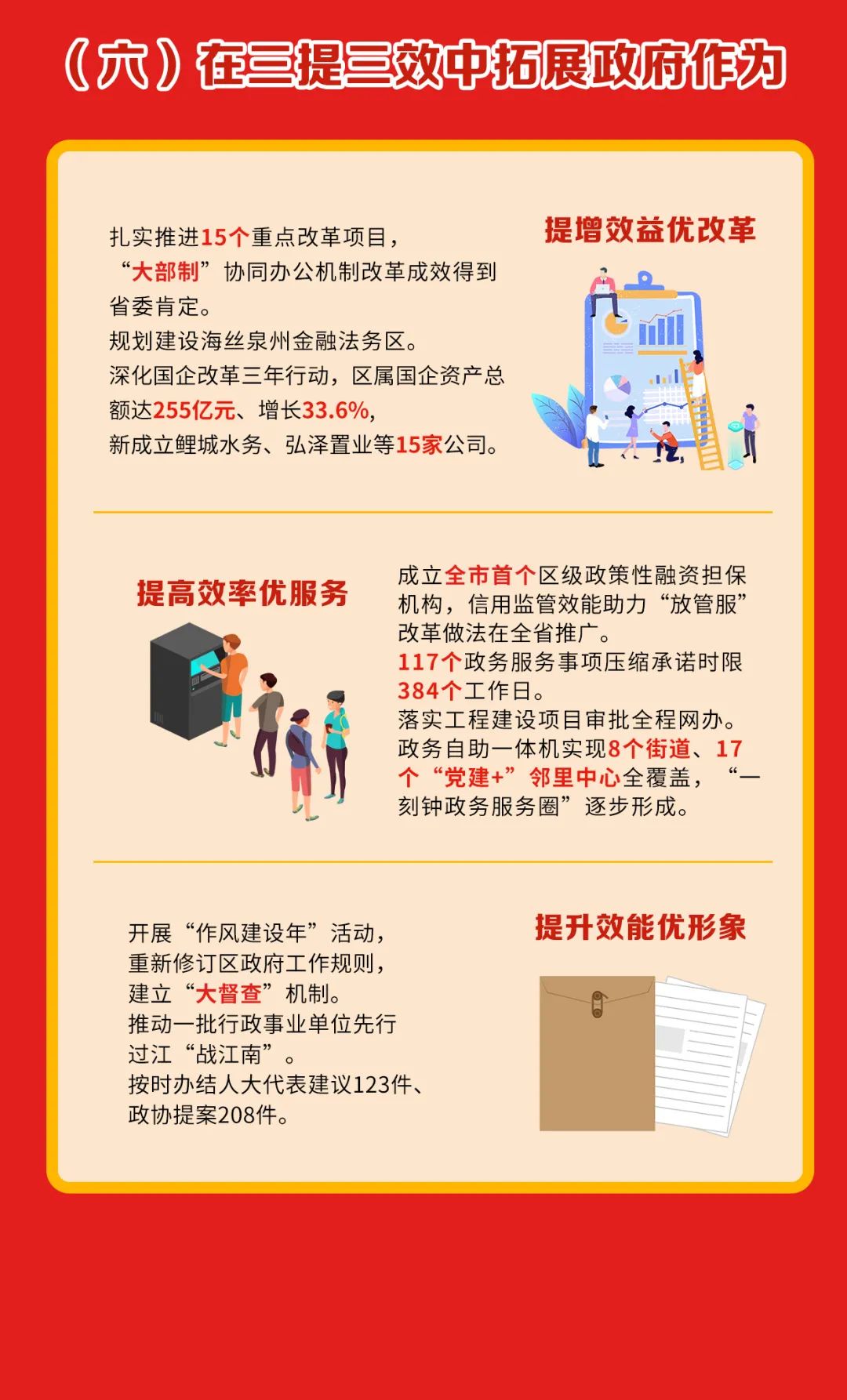 提升财政保障能力和预算管理水平,完善国企投融资监管机制。常态化开展扫黑除恶斗争,持续打击电信诈骗和养老诈骗。进一步深化党建引领基层网格管理服务。优化打造82个“提高型”智慧安防小区。