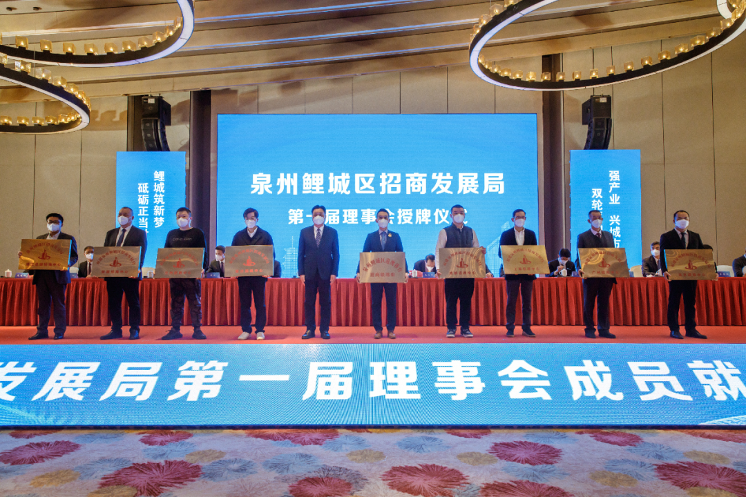 就职典礼上,现场宣读泉州鲤城区招商发展局第一届理事长、副理事长、秘书长、副秘书长、理事、监事长、监事、顾问名单;宣读泉州鲤城区招商发展局异地招商中心、泉州鲤城区滨江总部招商中心主任名单;为泉州鲤城区招商发展局、异地招商中心授牌,为当选理事会成员授牌,并举行鲤城区第二批招商引才顾问聘任仪式。