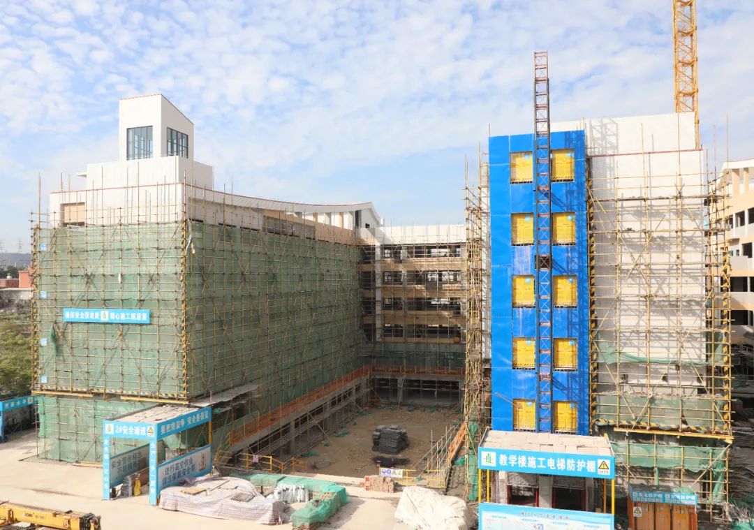 黄白灰相间的外墙、弧形屋脊、砖红色屋顶……走进泉州市第二中心小学常泰校区项目建设现场,实验楼、文体楼、宿舍楼等一栋栋建筑已初见雏形,建筑设计充分融合“闽南风”,兼具现代感,令人眼前一亮。施工人员正在抢抓年末施工时机,全力冲刺,除办公综合楼,力争其余楼栋春节前全部落架。