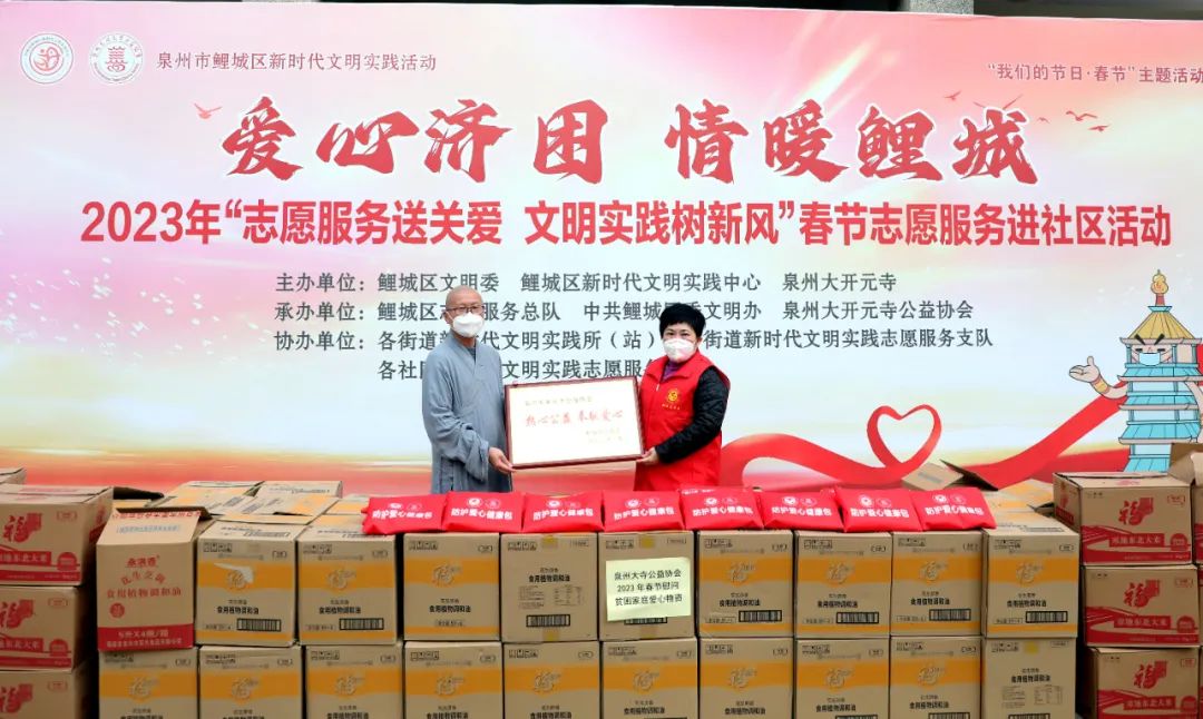 爱心济困送温暖,新春慰问传真情。1月12日上午,由鲤城区文明委、鲤城区新时代文明实践中心、泉州大开元寺联合主办的“爱心济困·情暖鲤城”志愿服务进社区活动正式开启。