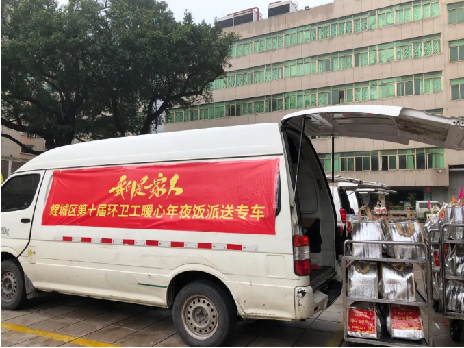 香酥炸虾、客家咸鸭、火龙醉排骨、香酥小黄鱼……一道道精心准备的菜肴,不仅散发浓浓香味,还盛满关爱与暖意。在活动主会场,领导嘉宾将一份份年夜饭和年货礼包送到46名环卫工人代表手上,每个人的脸上都洋溢着幸福的笑容。而一辆辆派餐车则早早出发,满载着年夜饭和年货,赶往9个分会场,将这份特殊的新春礼物送到环卫工手中。