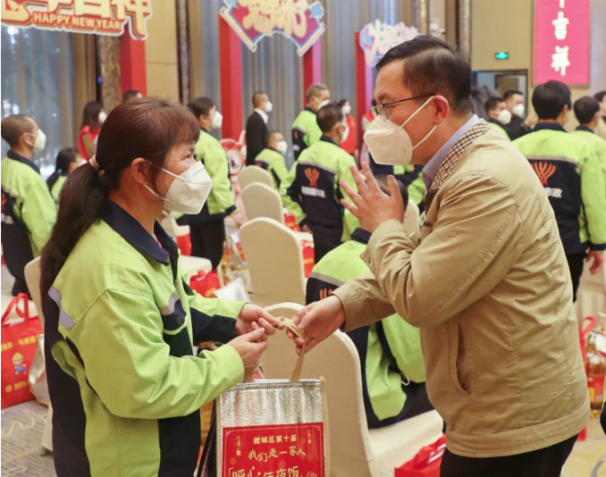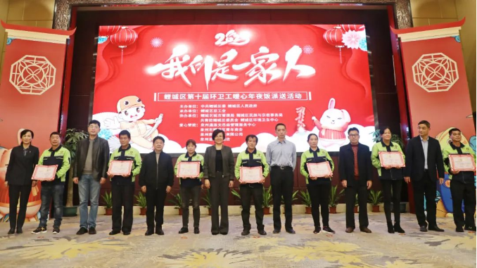 新春将至,1月14日下午,鲤城区举行第十届“我们是一家人”环卫工暖心年夜饭活动,活动设主会场和分会场,通过分餐派送、表彰慰问等形式,为一线环卫工人送去新春祝福,并致以深深的敬意和诚挚的感谢。