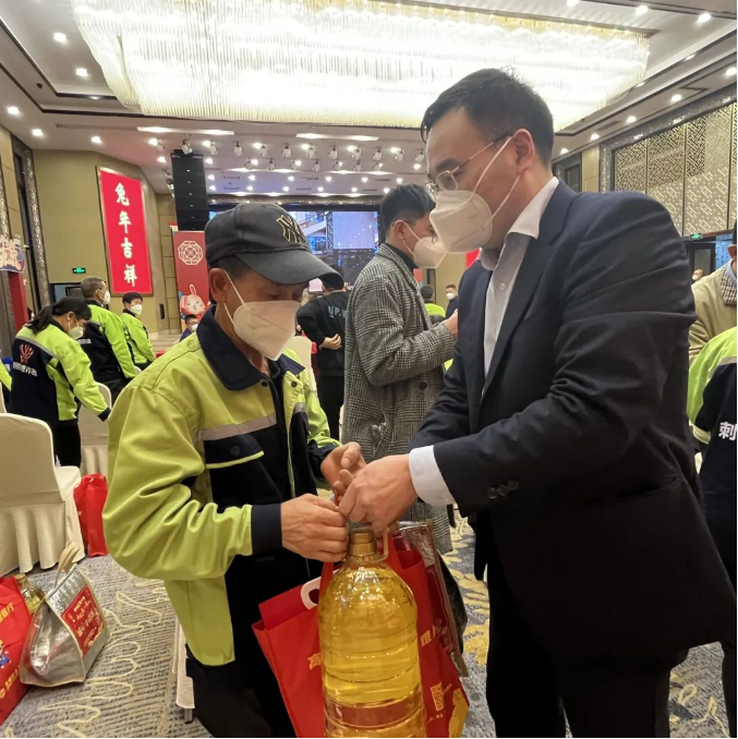 据悉,此次活动在金星酒店设主会场,在区总工会职工之家和8个街道办事处设立9个分会场,共为全区975名环卫工人送去价值15万元的年夜饭,“每一份年夜饭都包含5道菜肴,1份水果和饮料,采取分餐派送的形式,不仅请环卫工吃年夜饭,也希望他们可以带回家,同家人共享。”区总工会相关负责人介绍,此次还准备了价值16万元的食用油和大米,作为年货礼包送给环卫工人。