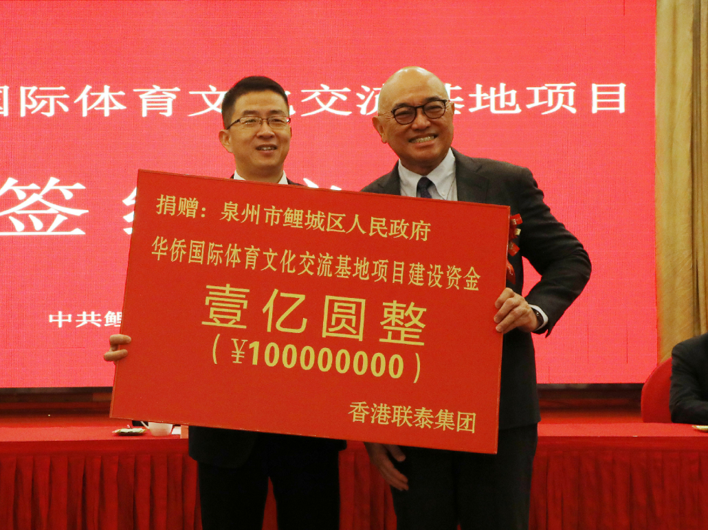 现场,鲤城区、香港联泰集团、鲤城区文投集团三方代表就华侨国际体育文化交流基地项目正式签约。随后,陈伟利代表香港联泰集团向鲤城区捐赠项目建设资金1亿元,鲤城区向香港联泰集团回赠纪念品。