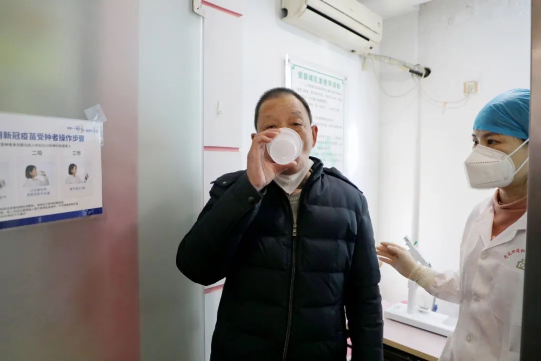 在开元街道社区卫生服务中心,陆续有居民群众前来接种疫苗。在医生的指导下,今年71岁的居民芦永福完成了“吸入式”新冠疫苗接种,“这是我的‘第四针’,‘吸入式’疫苗体验感很好,对我们老年人来说太方便了。”