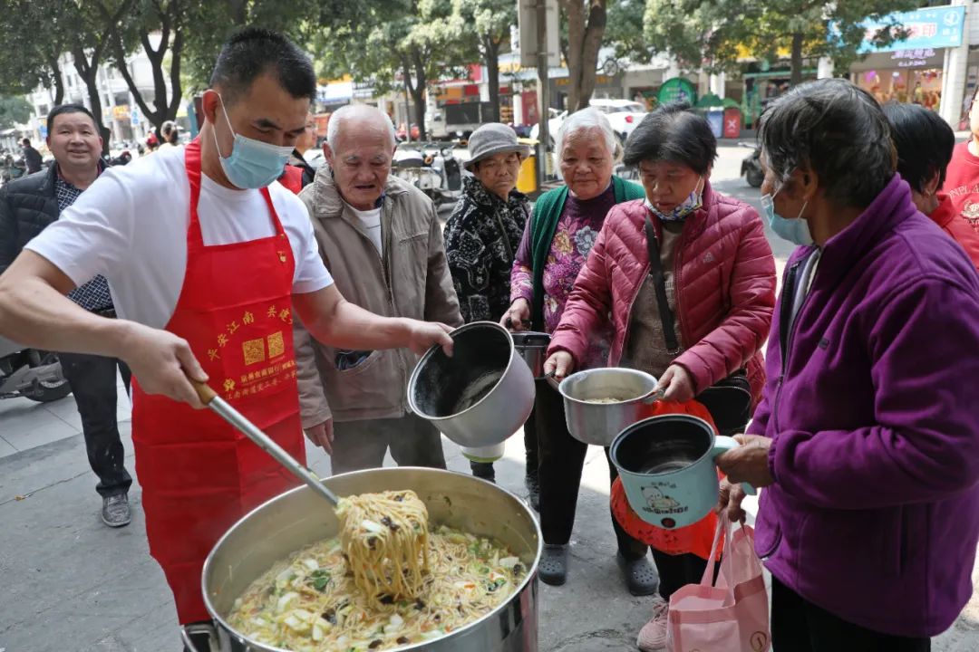“大家再稍等一会,今天的饭马上要好了!”这几天,江南街道王宫社区新开业的素食爱心食堂格外热闹,刚出锅的卤面冒着热气,不少居民被美味吸引而来,排队打包,不到一会,一锅卤面便见了底。