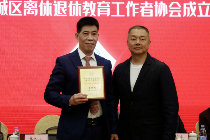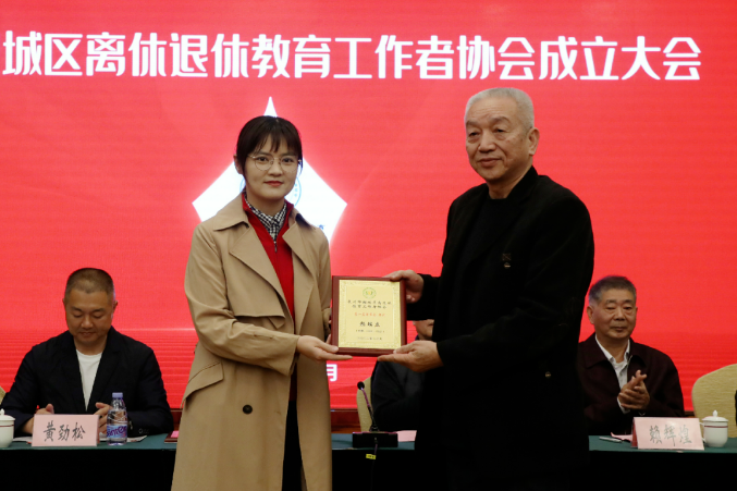 现场,与会领导为区离休退休教育工作者协会的名誉会长、荣誉会长、顾问代表授牌,并为区离休退休教育工作者协会揭牌。