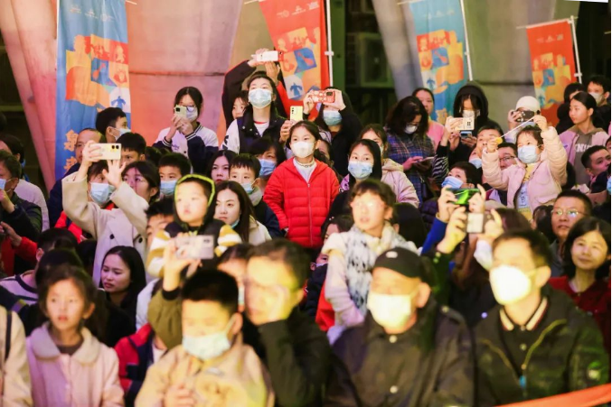昨晚虽然偶有小雨,但丝毫不影响市民游客观看演出的热情。市民陈女士和丈夫早早赶到现场,全程观看非遗表演。“我从抖音上得知活动消息,便早早预约了。”陈女士说,第一次看到这么多非遗文化表演,感觉非常震撼,她打算带上孩子再来看一次演出。