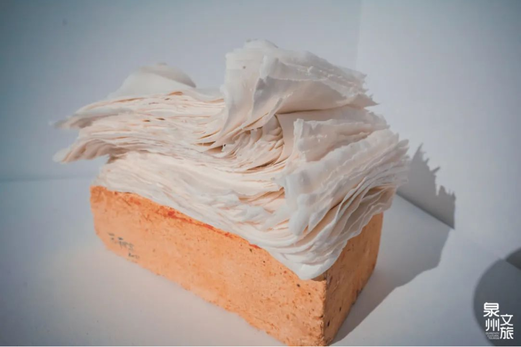 苏献忠的作品《纸》,用陶土制作的“纸张”经过德化窑的烧制,一摞一摞地堆放在一起,令人在视错觉中受到强烈冲击。