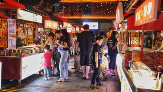 值得一提的是,夜市每个摊位均配备一个垃圾收集容器,夜市经营期间,摊主们需对负责清理各自经营区域;每天夜市结束后,管理方还会安排保洁人员进行全面清扫,“我们还安排人员不间断巡查,及时清理积存垃圾,保障夜市环境卫生整洁。”施康宁介绍道。
