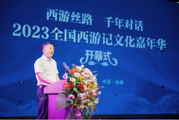 7月14日,2023全国西游记文化嘉年华开幕式暨“西游丝路·千年对话”文化交流活动在甘肃省张掖市甘州区举行。来自甘肃、福建、江苏等13个省、自治区、直辖市共200多位政府机构、高校、研究机构及文旅产业单位的嘉宾参加本次活动。